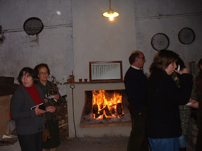 Primeiro houve a Missa presidida pelos dois sacerdotes jesuítas da família e acompanhada por um coro de vozes jovens também da família. Esta celebração teve lugar na capela dos Soudos (em vez do formato campal no nosso jardim, como inicialmente tinham pensado). De regresso ao páteo da nossa Casa Mãe foram servidas as entradas debaixo de várias tendas, enquanto se procedia à assadura dum porco inteiro num grande churrasco. Depois deste animado convívio do numeroso grupo de familiares, os convidados puderam passar para a adega onde havia mesas postas para toda a gente se poder sentar e onde foi servida uma excelente variedade de doces e salgados (e ainda saborosas lascas vindas do churrasco). No final da refeição os aniversariantes tiveram direito a bolo dos 25 anos de noivado e muitos brindes e discursos.