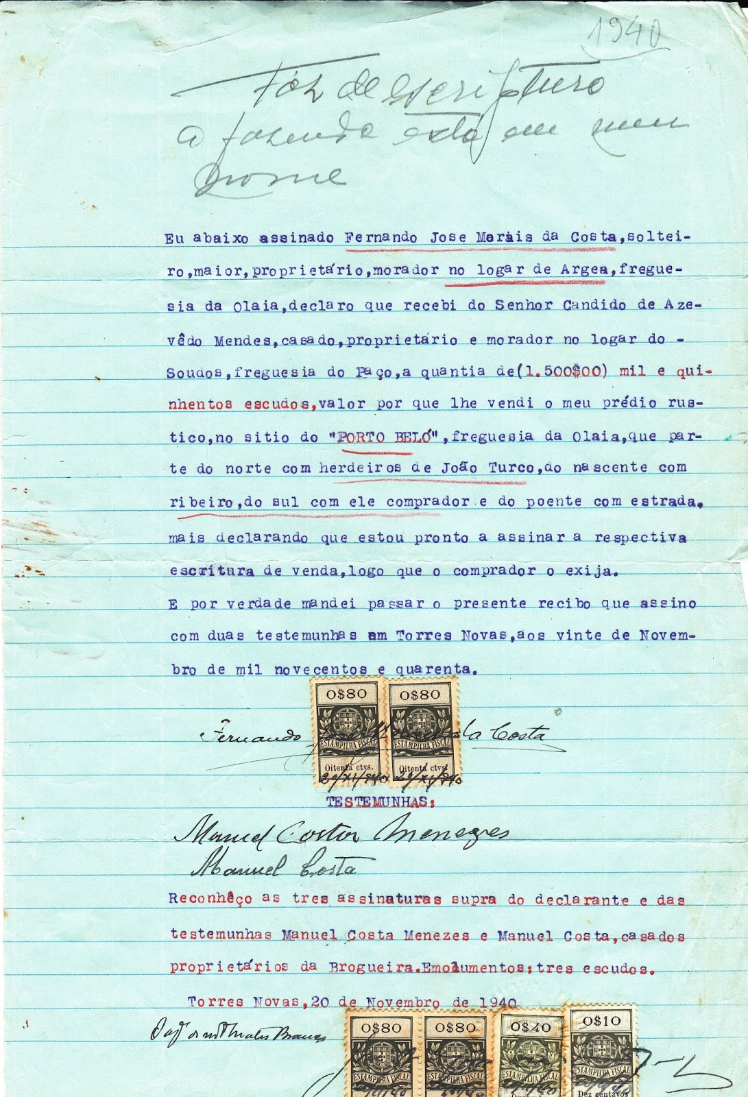 Fernando José Morais de Costa declara que vende a Cândido de Azevedo Mendes um prédio rústico no sítio de "Porto Beló".