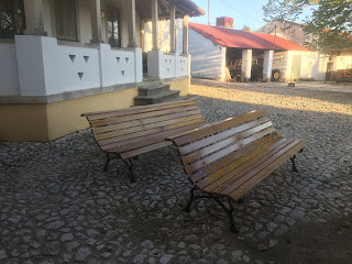 Apresento hoje foto de dois bancos acabados de restaurar para o jardim de "Dona Vitorinha".